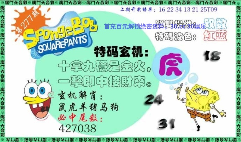 277期:九肖【猴鸡兔猪鼠龙马狗】开:虎16中